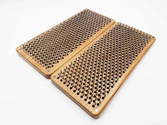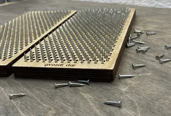 Шаг между гвоздями – самый главный параметр. От расстояния между гвоздями зависит сложность практики. Чем реже расположены гвозди, тем сложнее будет на них стоять. А если гвозди расположены часто, то на каждое острие будет распределяться меньше веса тела и соответственно стоять будет проще. Начинающим подойдет шаг между гвоздями 8-10 мм.