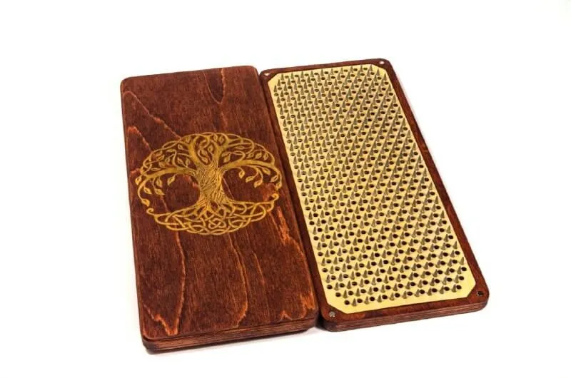 Доска Садху – это простое приспособление для духовной практики, представляющая собой доску с вертикально вбитыми гвоздями. Практика заключается в стоянии на острых концах гвоздей и представляет собой добровольный выход из зоны комфорта в стрессовое состояние, для осознанного преодоления боли и страха.