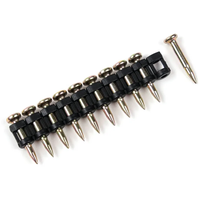 Диаметр у стандартных гвоздей для гвоздезабивного пистолета обычно составляет 2,7 мм. Острие формируется штамповкой с отсечением лишнего металла. Стандартные гвозди почти не воздействуют на бетон или кирпич при вхождении.Не подходят для тяжелого бетона: из-за тонкого тела склоны к изгибанию при забивке. Т.к. нейлер не контролирует силу вхождения гвоздя, при попадании на гранитную крошку гвоздь может согнуться и сколоть бетон.