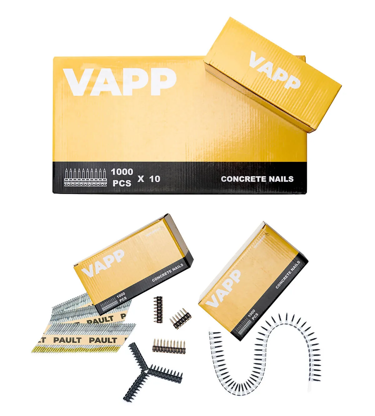 - Качественные и проверенные многими потребителями крепеж по бетону, дереву, а также инструмент VAPP.